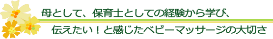 専門学校卒業後、乳児保育園に就職し、 その後公立保育所、病院内保育所などで働きましたが、子供達と出会いの中で 教えられたことが、たくさんありました。 保育所になじめず、あまり話さない子には、様子をみながら少しづつ話しかけ、まずは信頼関係を築きました。 遊んだり、スキンシップをとったり。じっくり時間をかけてとその子と関わってみました。